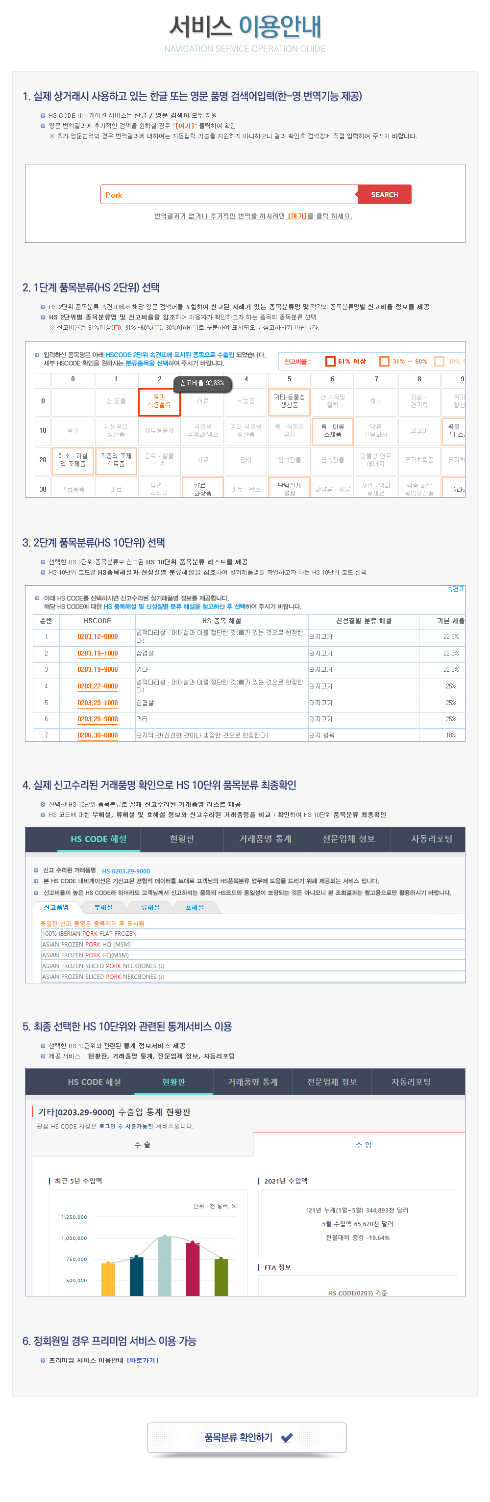프리미엄 서비스 안내 페이지로 이동합니다. 품목 분류 확인 페이지로 이동합니다. HS네비게이션 서비스안내 페이지로 이동합니다. HS네비게이션 이용안내 페이지로 이동합니다. 프리미엄 서비스 이용 안내 페이지로 이동합니다. 품목 분류 확인 페이지로 이동합니다. 한국무역통계진흥원으로 이동합니다.